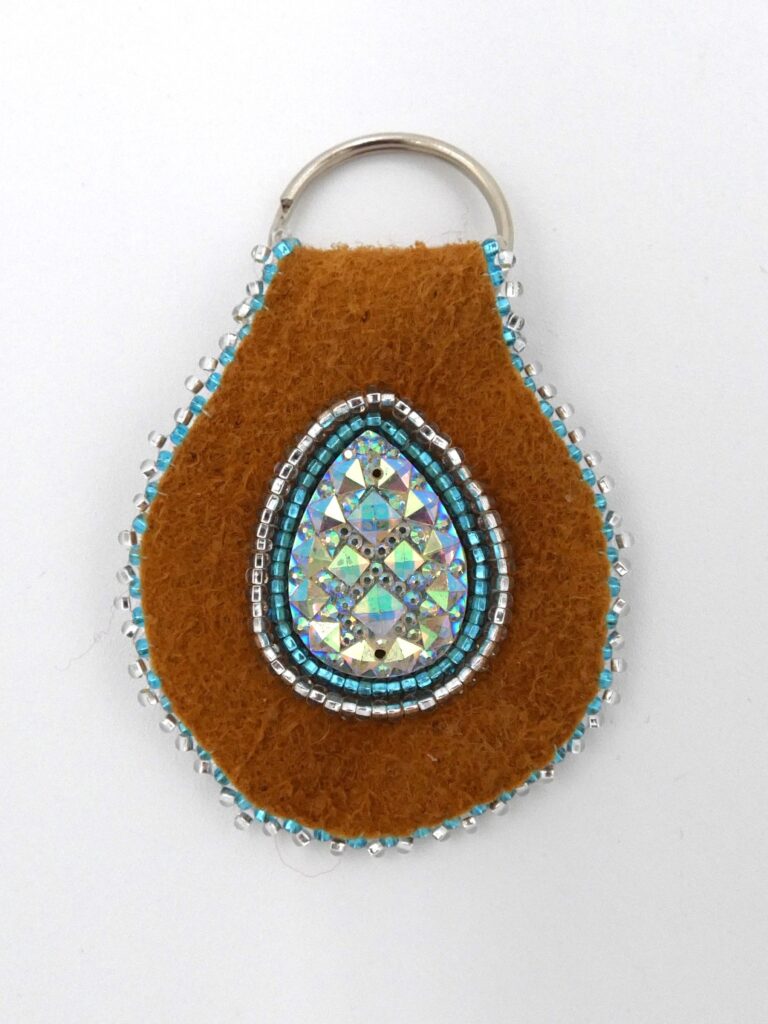 Silver and Blue Teardrop Moose Hide Keychain