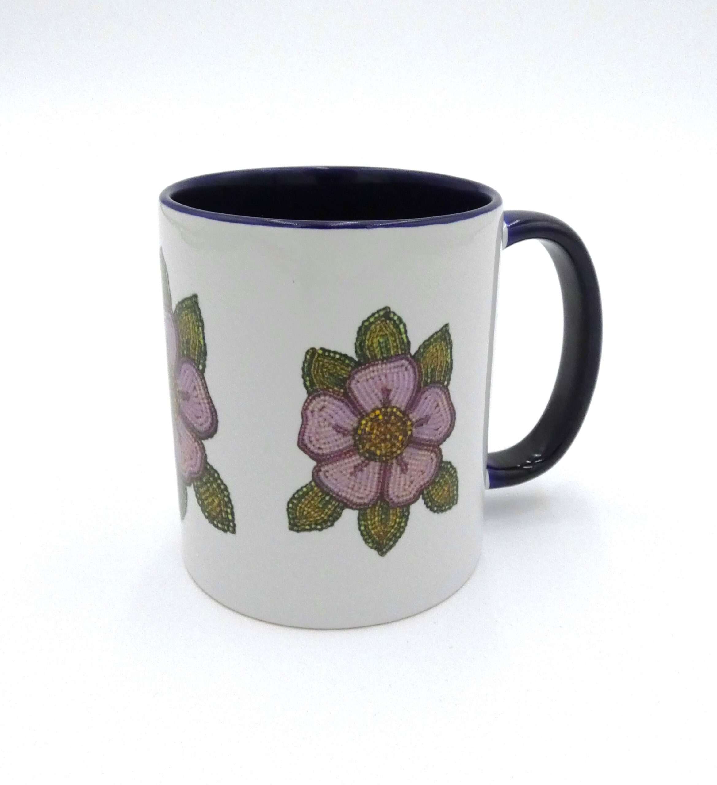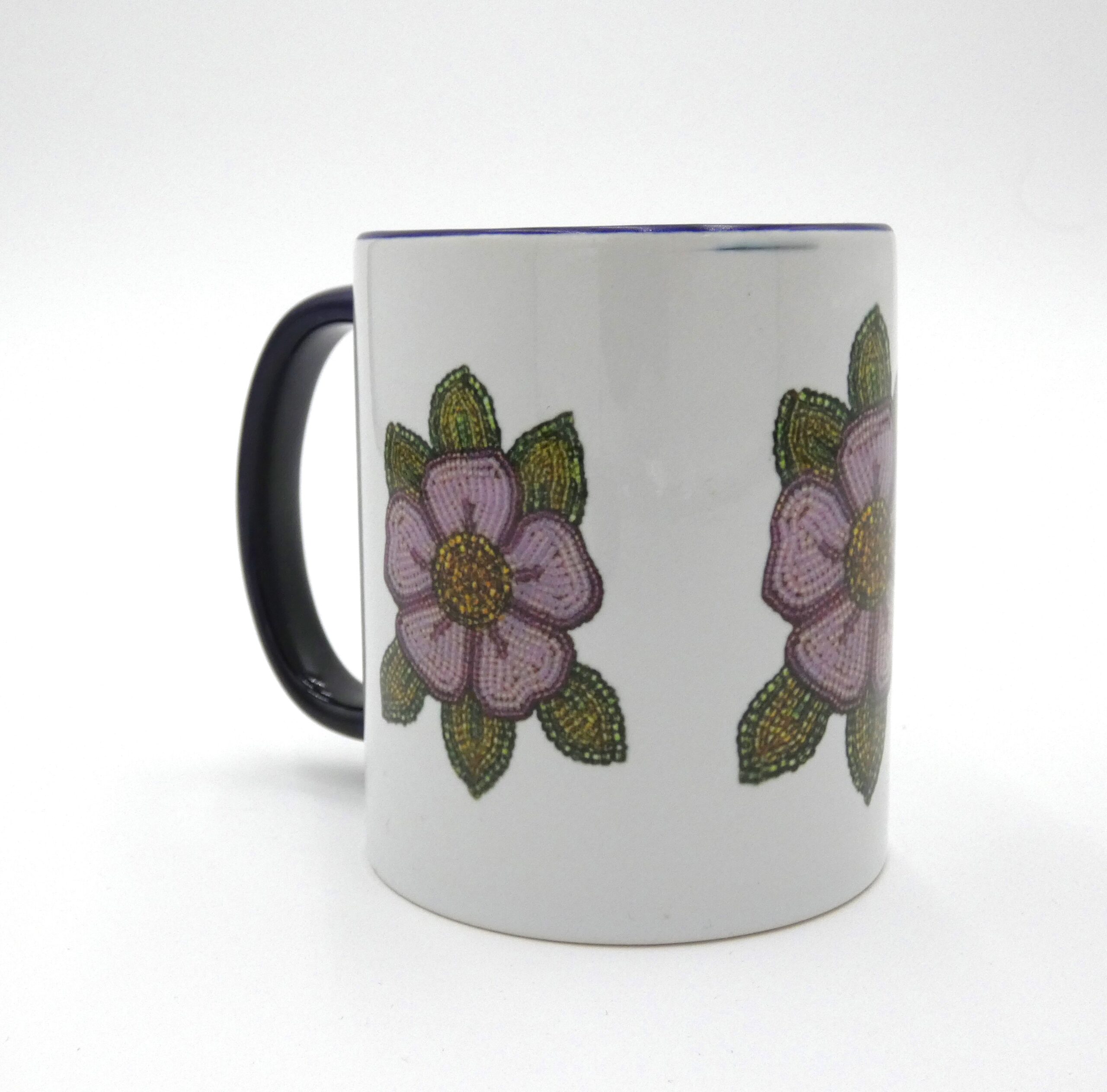 I created beaded moccasin uppers with Yellowknife's Tree of Peace. I used an image of my bead work and used a sublimation printer to print it special paper that fused onto the mug with a heat press.