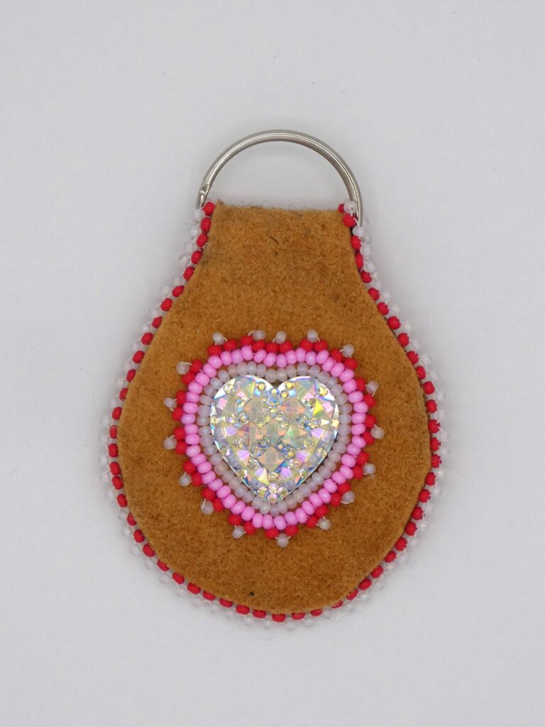 Moose Hide Keychain with Heart Cabochon