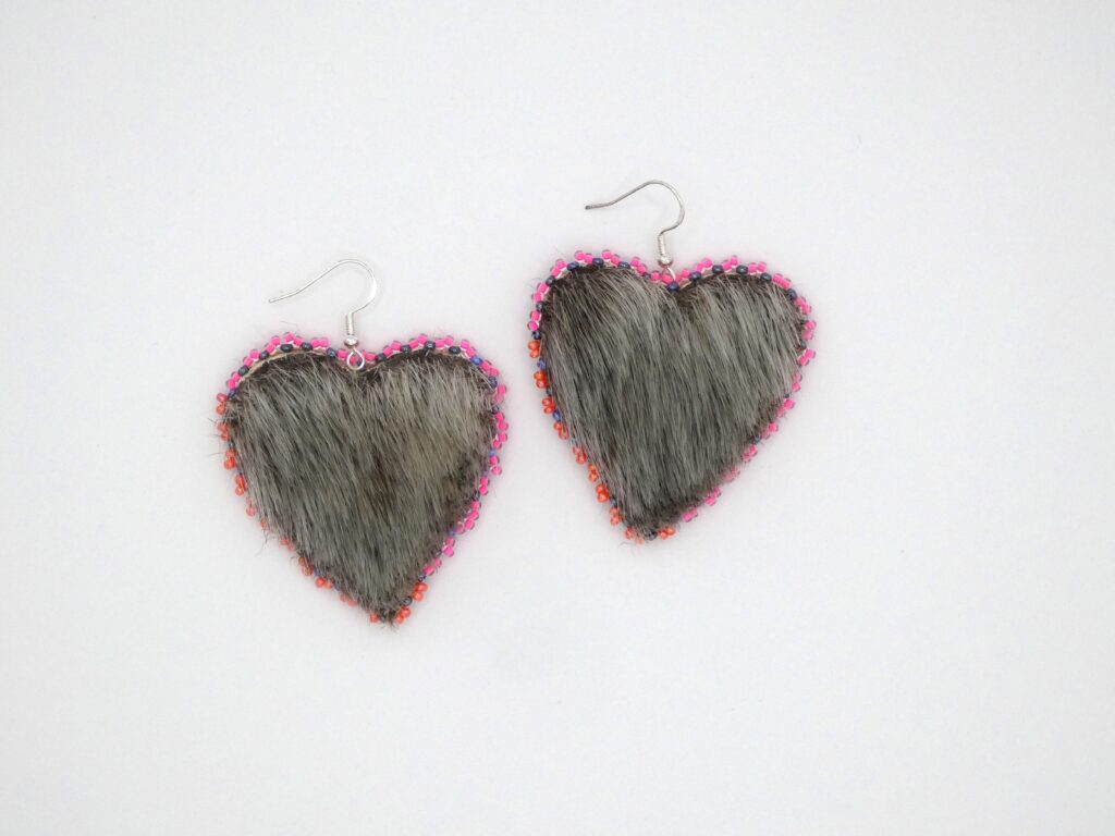 Seal Skin Earrings with Pink Beads