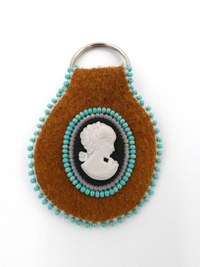 Beaded Moose Hide Keychain with Cameo Cabochon